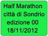 Domenica 18 Novembre 2012 si svolgerà la prima edizione ( 00 ) della Half Marathon città di Sondrio, Mezza Maratona equivale a Km 21,097 percorso cittadino, idealizzato ed organizzato dall'ASD RUNNER Sondrio. sponsor Tecnici per questa edizione sono : Newline ( scarpe ed abbigliamento runner ), +WATT ( complementi per l'alimentazione dell'atleta ).